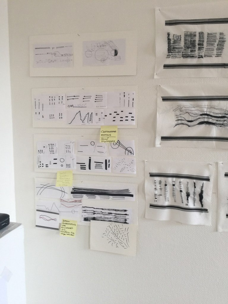 Video made from joining all the drawings and sketches made during the process of sound experimentation + the sound is obtained after listening to one of the drawings by mobile app. ( Read instructions below).