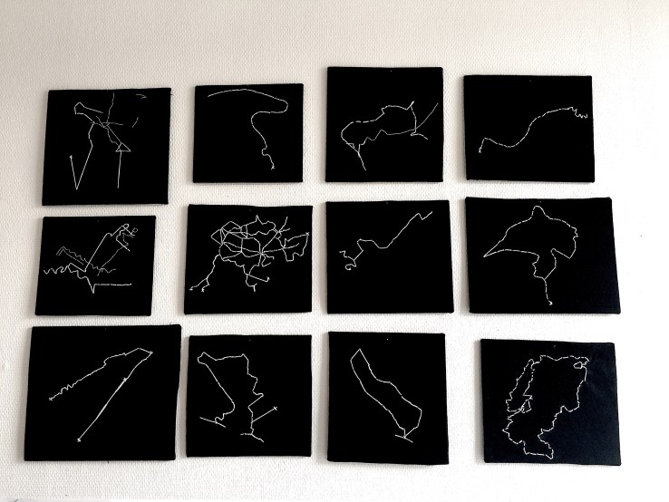 Pieces sewn on paper, to play with the volume obtaining different “sound” qualities.