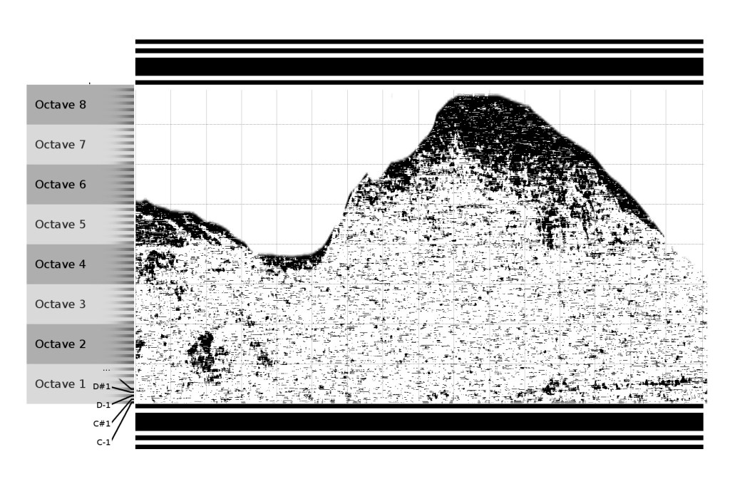 2D barcode of the audio as a sound piece of the graphic representation of the sound (an analogy with the QR-CODE, code can be read in real time) .
