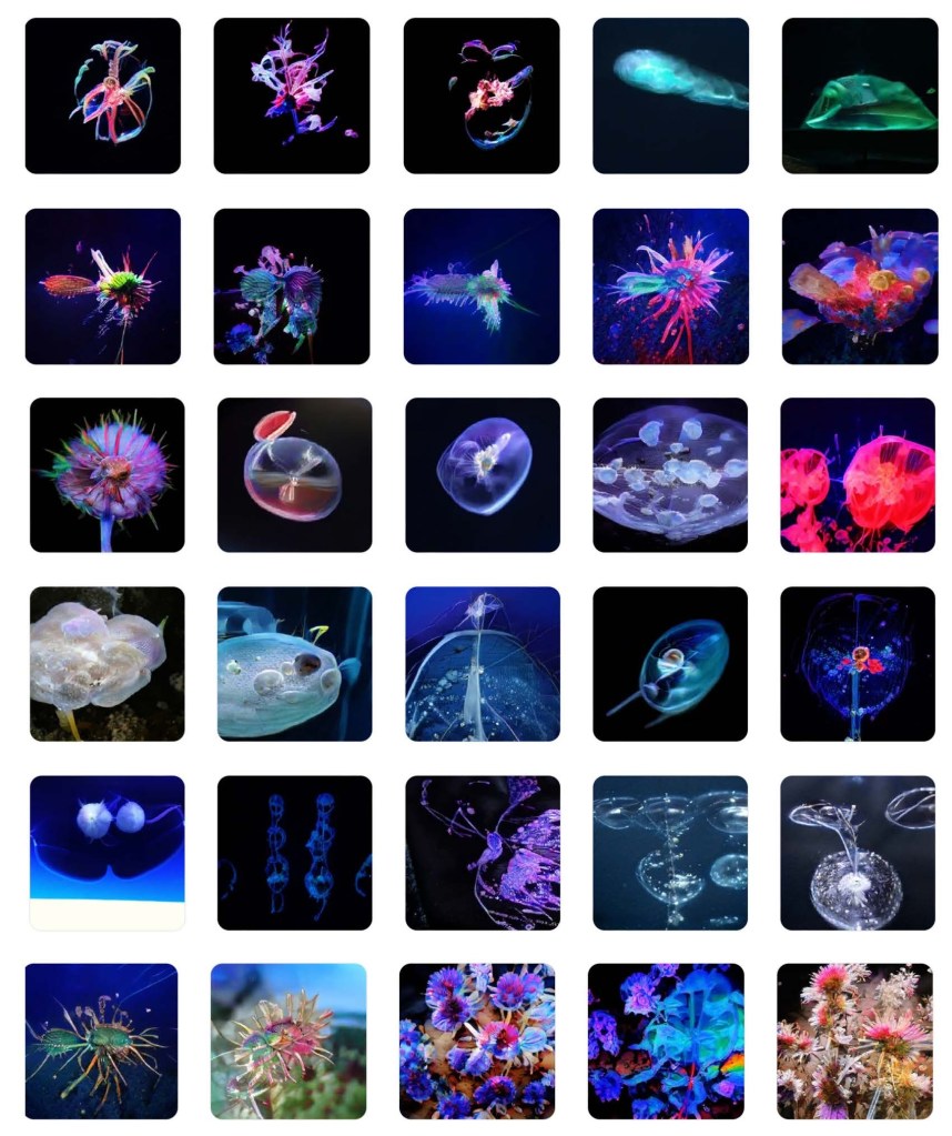 Ecologías más que humanas en la zona intermareal como punto de intersección de los océanos. ¿Qué sucede en las profundidades de los océanos? ¿Qué tipo de seres habitan la oscuridad del mar? ¿Cómo se adaptan a la nueva era? ¿Podemos aprender de la evolución de los microorganismos que habitan el territorio desconocido del fondo acuático? | More than human ecologies in the intertidal zone as the intersection of the oceans. What happens in the depths of the oceans? What kind of creatures inhabit the darkness of the sea? How do they adapt to the new era? Can we learn from the evolution of the micro-organisms that inhabit the unknown territory of the underwater depths? |
